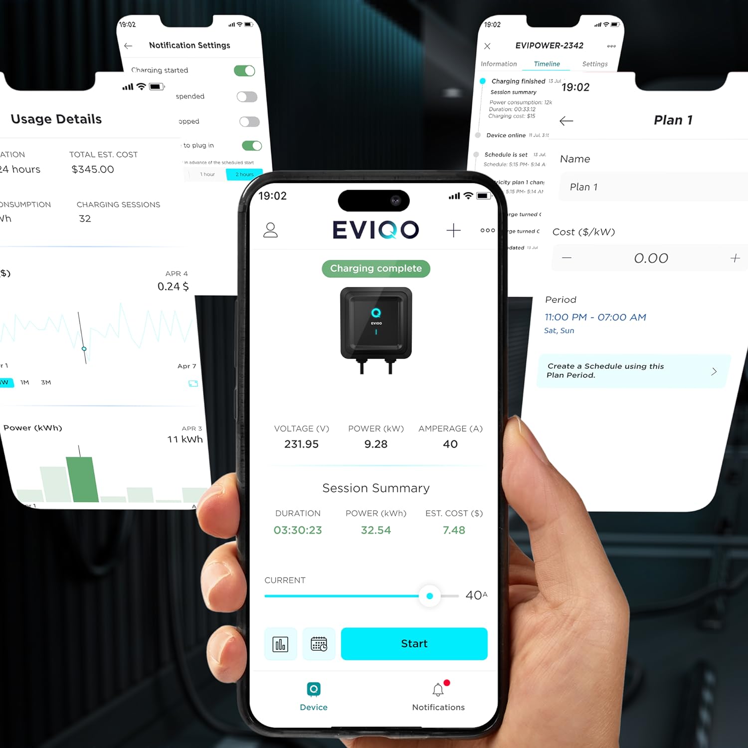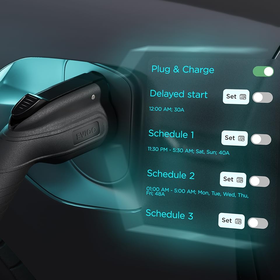 - Set schedules and EVIQO smart EV charger will charge your car automatically.